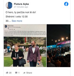 Madje, kur erdhi fjala qe të lexohej emri i tij, jo vetëm që nuk u lexua i pari mes kandidatëve të qarkut të Fierit, si drejtues politik i të cilit është, por nuk pati ndonjë hare mes gjindjes, si e asaj që kam bërë unë kur lexohej emri i tij në prillin e vitit 2021”, shkruan deputetja.