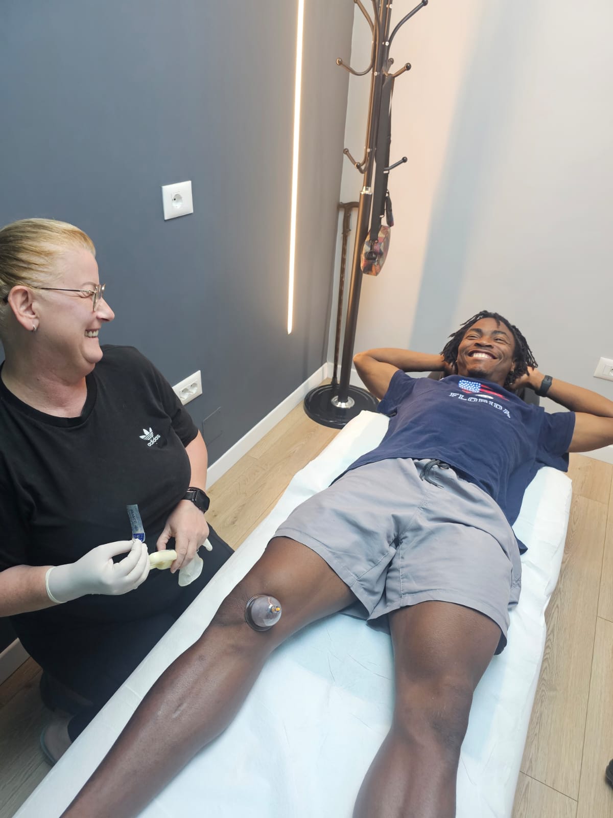 Futbollisti i Maliqit, Mutiu Adeoye Olamilekan, është trajtuar për herë të parë në klinikën e fizioterapistes së njohur Alma Angjo, pas një shqetësimi në gjurin e djathtë që e ndjeu tri ditë më parë gjatë një seance stervitore.