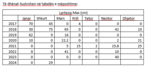 Burimi: Buletinet Klimatike Mujore të publikuara në faqen web te IGJEOs