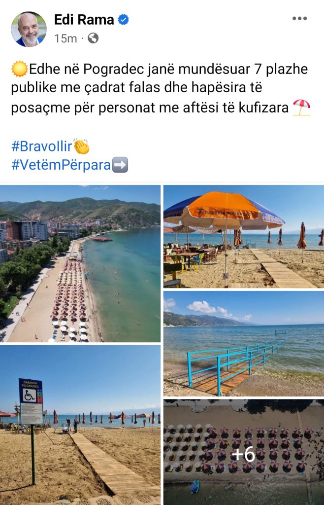 Kryeministri Rama ka promovuar në rrjetet e tij sociale plazhet publike që ka krijuar bashkia e Pogradecit në funksiom të pushuesëve. Plot 7 plazhe publike dhe të pajsiur me çadra falas dhe gjithë elementët e sigurisë. Duket se këtë vit thithja e sa më shumë pushuesëve me oferta lehtësuese është rivaliteti më i madh i bashkive turistike të vendit.