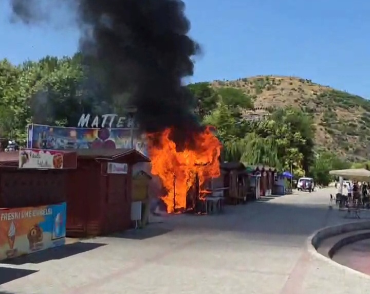 Një kioskë druri që shërbente ushqime të shpejta përgjatë shëtitores së qytetit të Pogradecit është përfshirë nga flakët mbrëmjen e sotme, duke shkaktuar panik mes qytetarëve dhe bizneseve pranë.